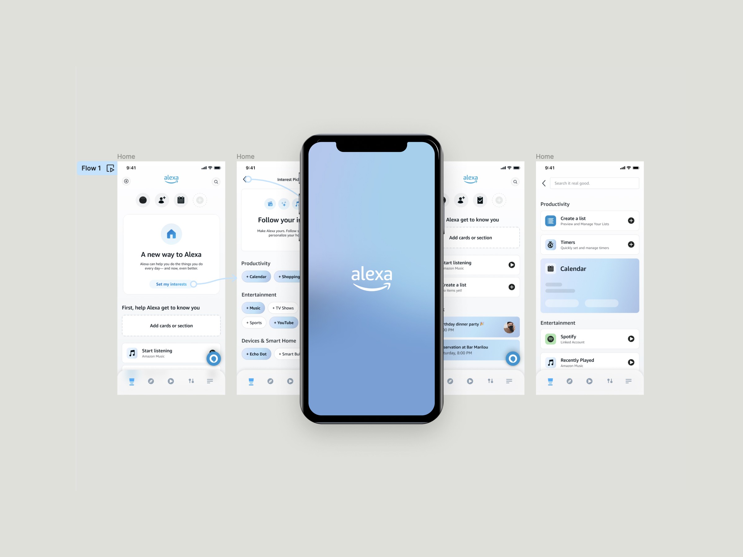 Alexa is Amazon's virtual assistant with over 100 million Alexa-powered devices sold— and its presence is growing within the Amazon ecosystem and beyond. I worked across mobile assistant, onboarding, settings, and product vision.